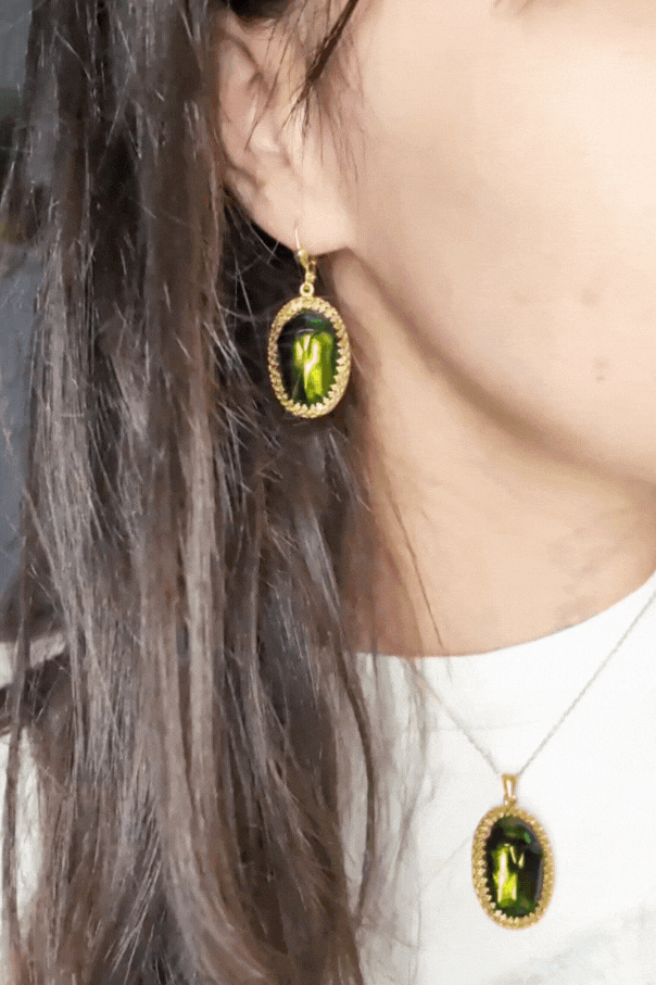 Die Maru Ohrringe werden aus echten Käfern gefertigt, deren schwarzer Glanz mit bunten, irisierenden Punkten eine märchenhafte Tiefe erzeugt. Jedes Paar ist handgemacht und ein natürliches Unikat, da jeder Käfer in Farbe und Muster leicht variiert. Die Silber Variante besteht aus hochwertigem 925 Silber, die goldene Version ist 18 Karat vergoldet.